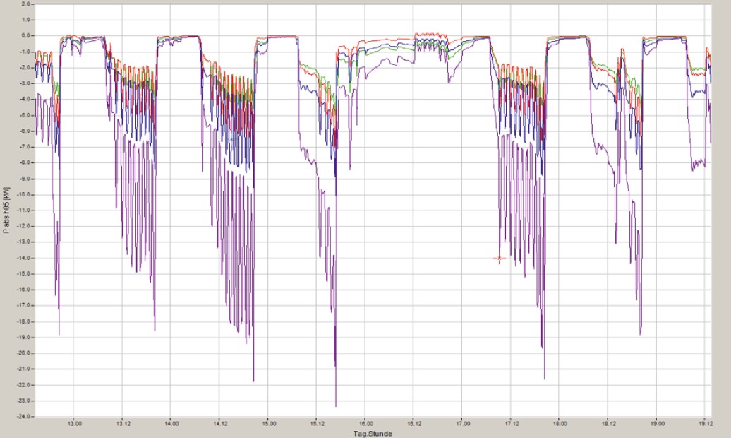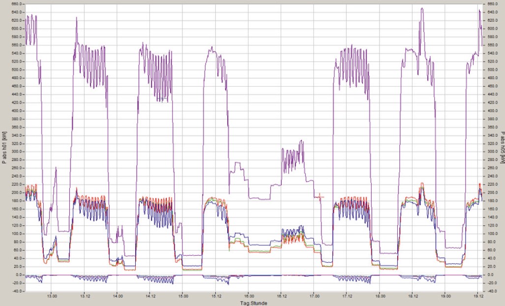 Hier ein reelles Beispiel aus der Praxis, in der eine Bewertung der Leistungsflussrichtung eine Rolle spielen könnte. Grund für diese Messung waren Unterschiede in der Energiemessung zwischen verschiedenen geeichten Energiezählern.