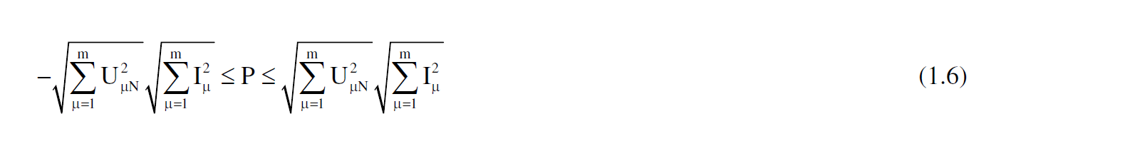 Daraus folgt für den Bereich und den Betrag der Wirkleistung im Mehrphasensystem ohne Neutralleiter