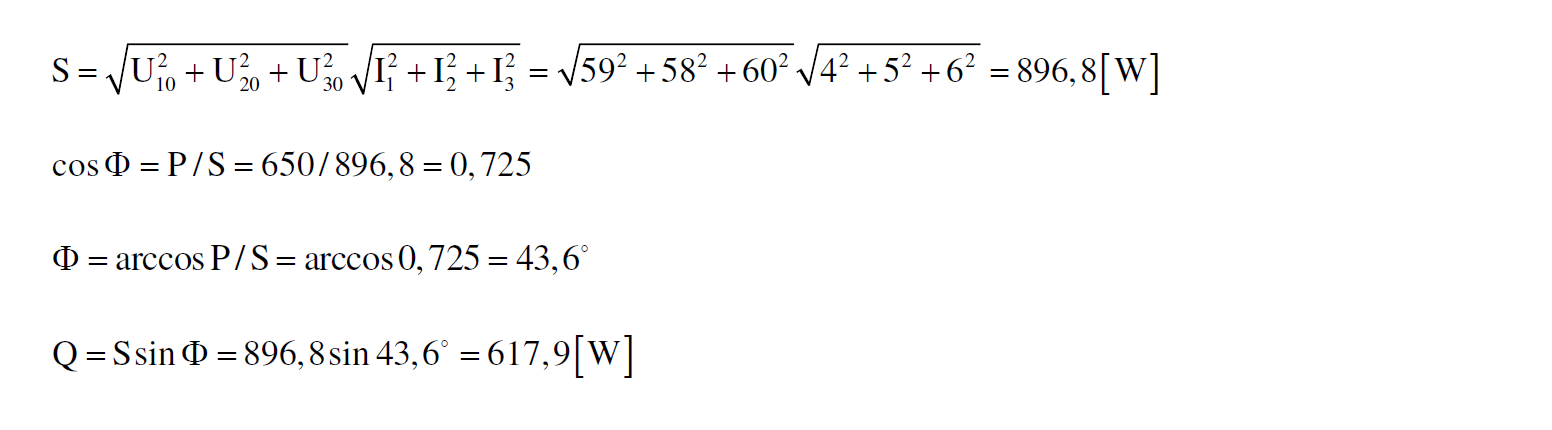 Mit den Messwerten im Dreiphasen- Dreileitersystem